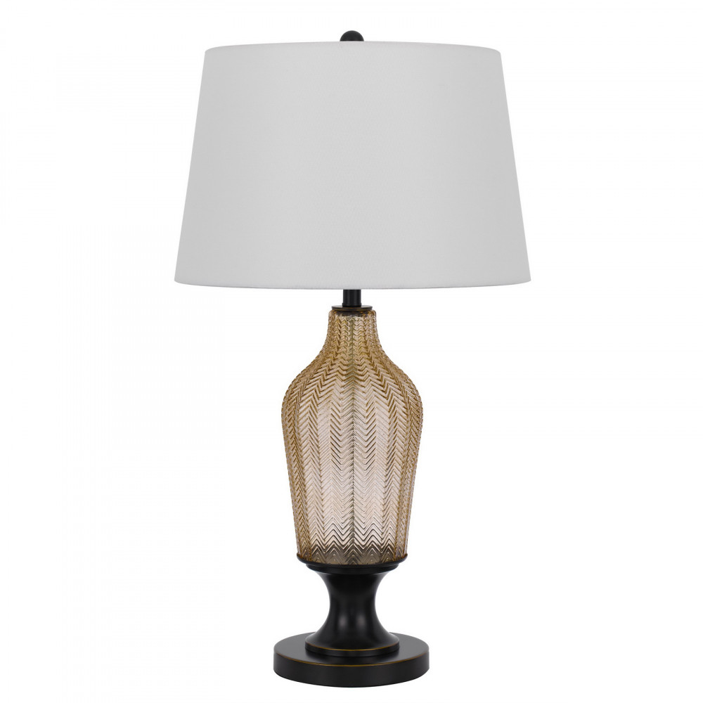 Create a warm and inviting atmosphere in your space with this smoked glass table lamp. It features a