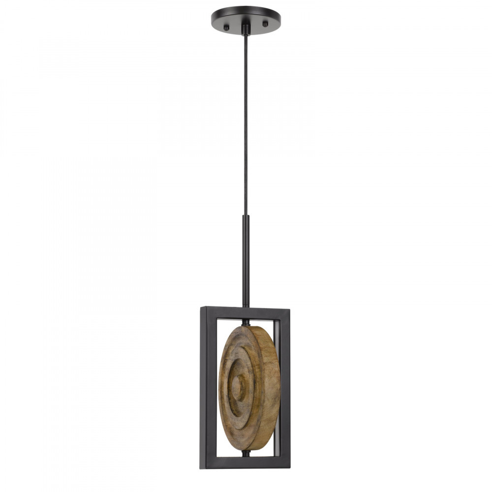 Update your decor with this metal and pine integrated LED hanging pendant.