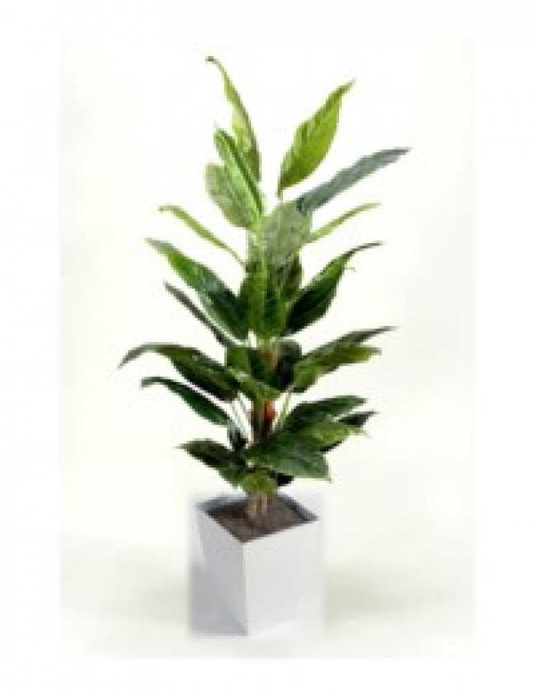 7' SPATH PLANT IN WHITE SQUARE METAL PLANTER