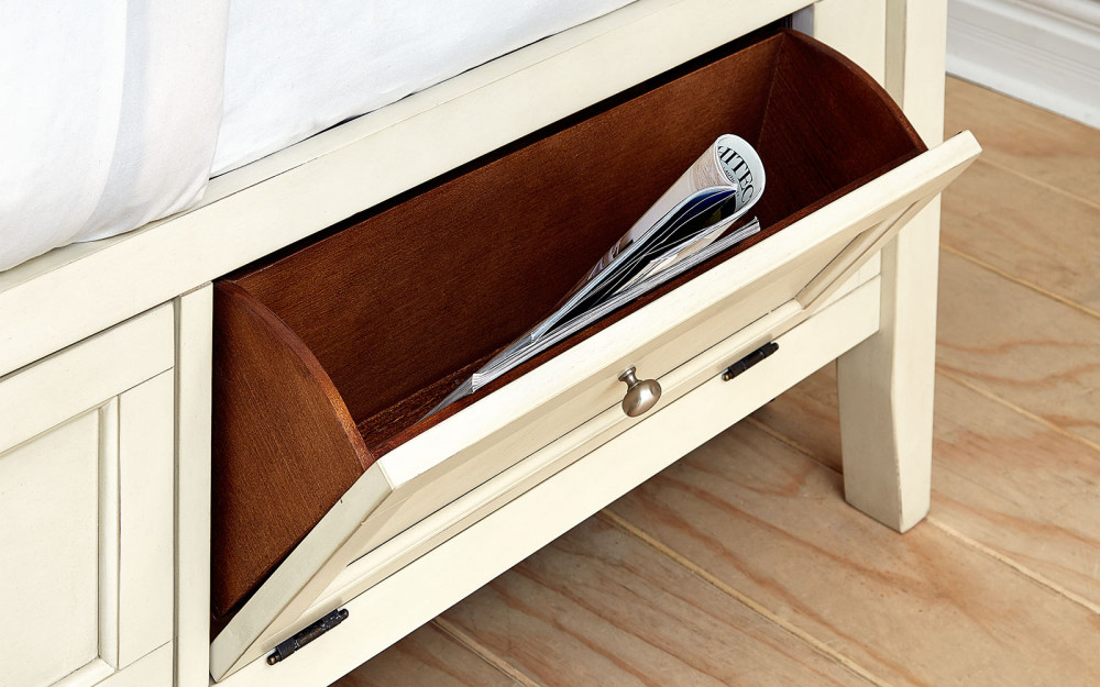 The classic paneling and clean lines of the Northlake collection has been designed to not overwhelm more compact rooms while maximizing storage for small and large rooms alike. Solid wood construction with a crisp finish color of white linen for an airy cottage feel. Brushed nickel hardware graces the case goods featuring all solid wood drawer boxes, felt lined top drawers, and 3 tier heavy duty ball bearing glides for easy access to the entire drawer.