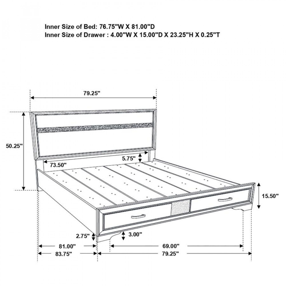 This alluring bed from the Miranda collection has both fashion and function. It features crisp lines and a headboard that's as simple as it is impressive. The footboard is built with two roomy drawers to hold extra sheets and blankets. The bed has an effortless timelessness and elegance. Add to the bedroom for a charming ambiance that's sure to please.