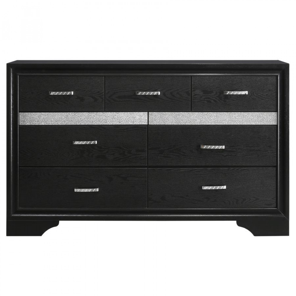 • Crystal drawer pulls and glitter accents enhance the glam aesthetic