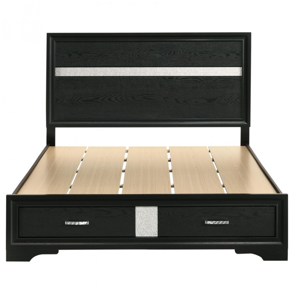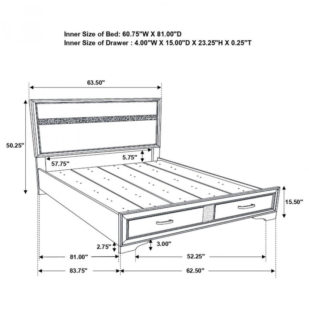 Give your bedroom a glamorous update with this gorgeous storage bed. The headboard and footboard are decorated with acrylic glitter panels for a dazzling touch of shine. Two slide-out drawers are built into the footboard to maximize storage space. The drawers are topped with rhinestone handles for even more beautiful bling. This platform bed is mattress ready for added convenience.