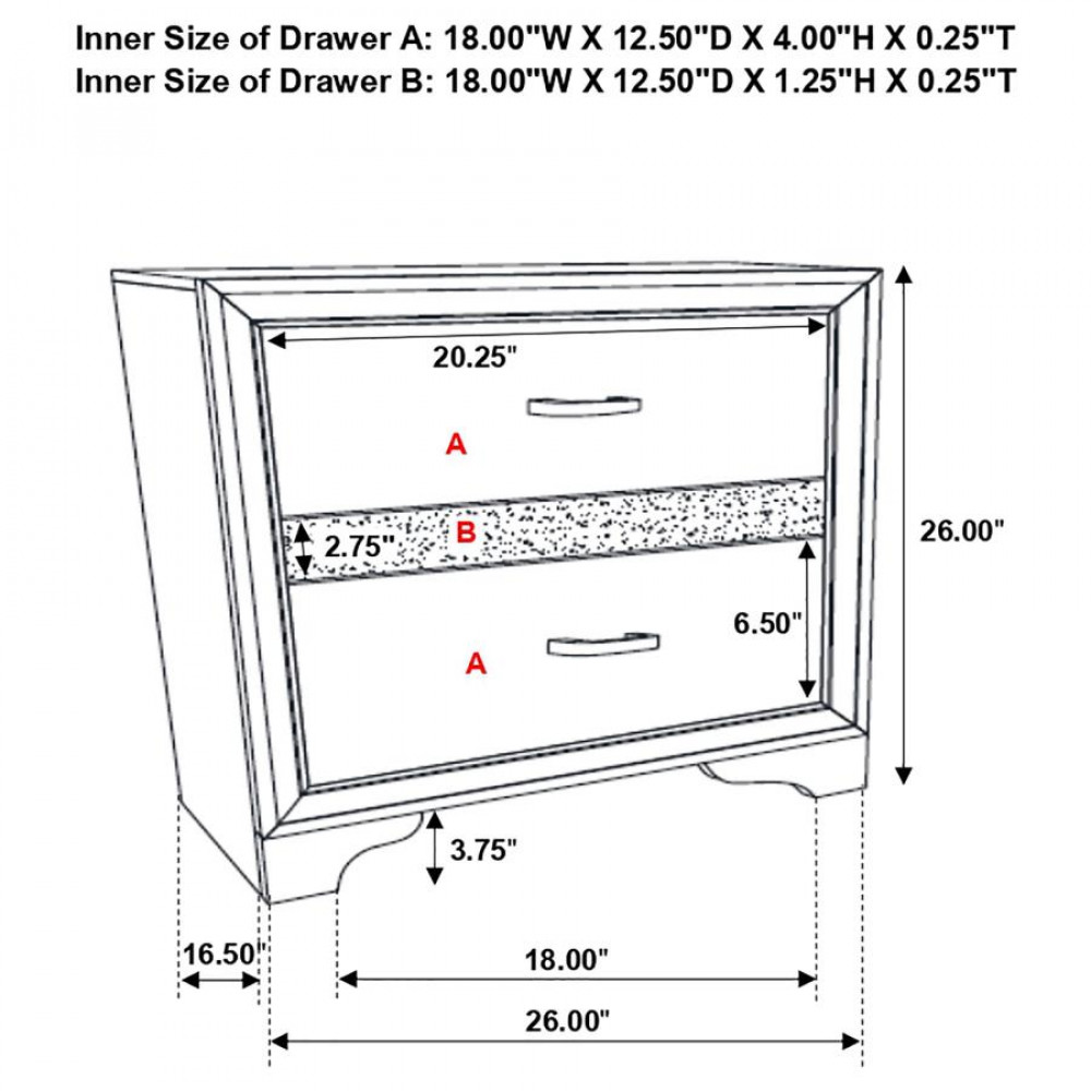 Create a stunning bedroom ensemble that's fit for modern royalty. Each gorgeous piece in this four-piece set flaunts silvery, sparkling accents for a truly glamorous look. The bed features a solid, straight silhouette and one storage drawer built into the base. The case pieces bring you even more storage space to keep your room looking neat and tidy.