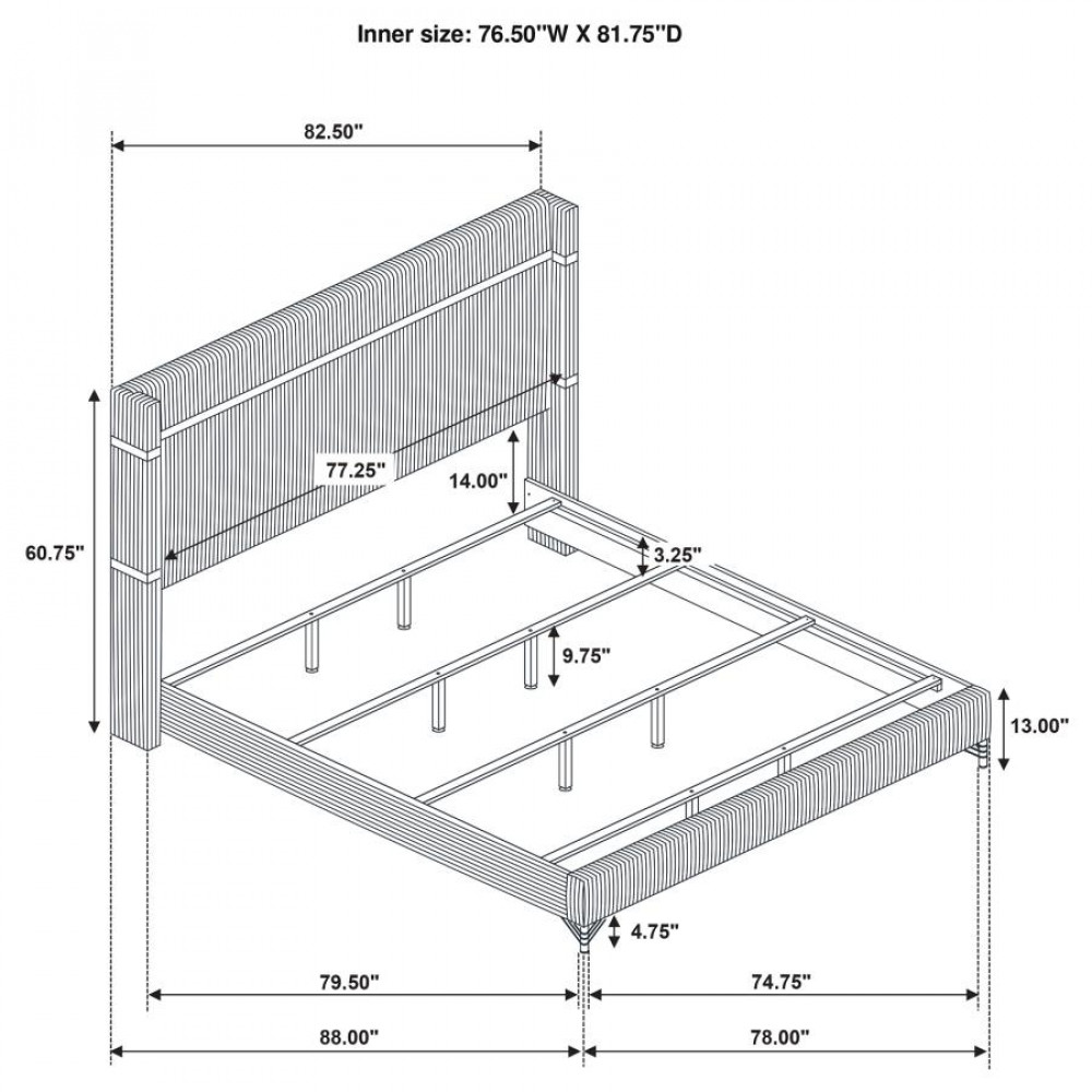- Gleaming gold finish trim accents the headboard and offers an eye-catching touch to decorative legs