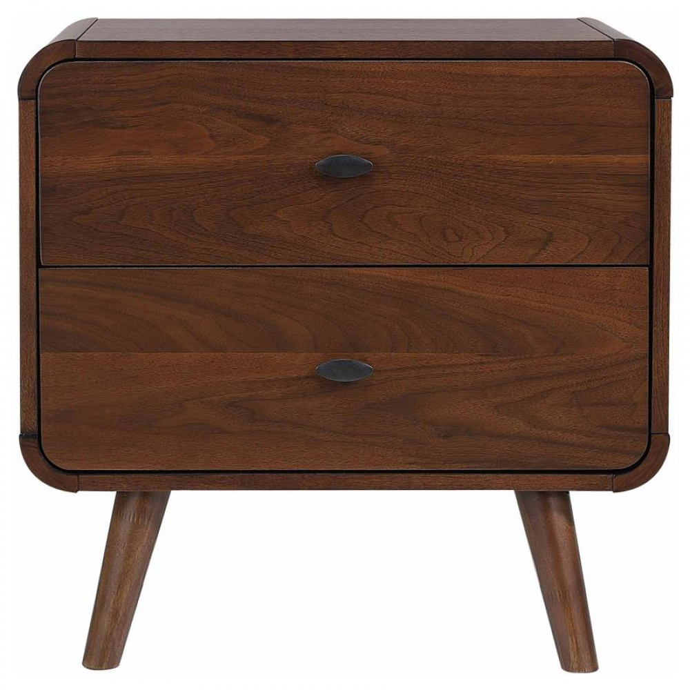 • Two-drawer nightstand with a rich dark walnut finish