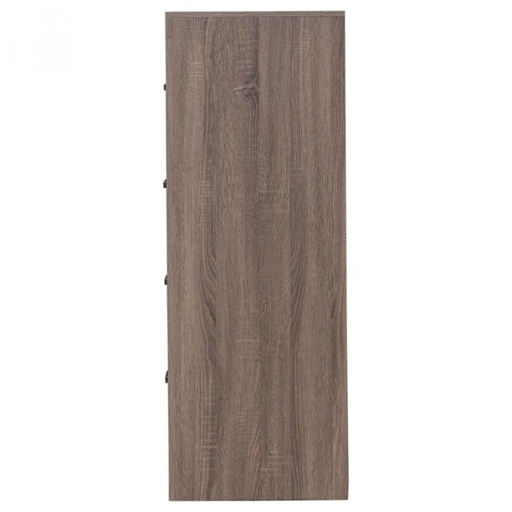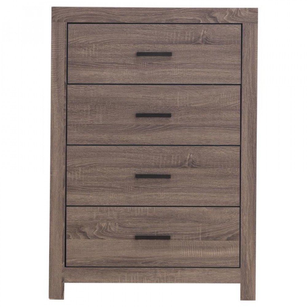 This four-drawer chest combines modern style with practical storage. Its clean-lined frame complements contemporary spaces, while four spacious drawers provide ample room for clothing, linens, and accessories. Crafted from engineered wood with a durable laminate veneer, it is built for everyday durability. Matte dark bronze handles enhance the refined look, making this chest a functional and stylish addition to any bedroom.