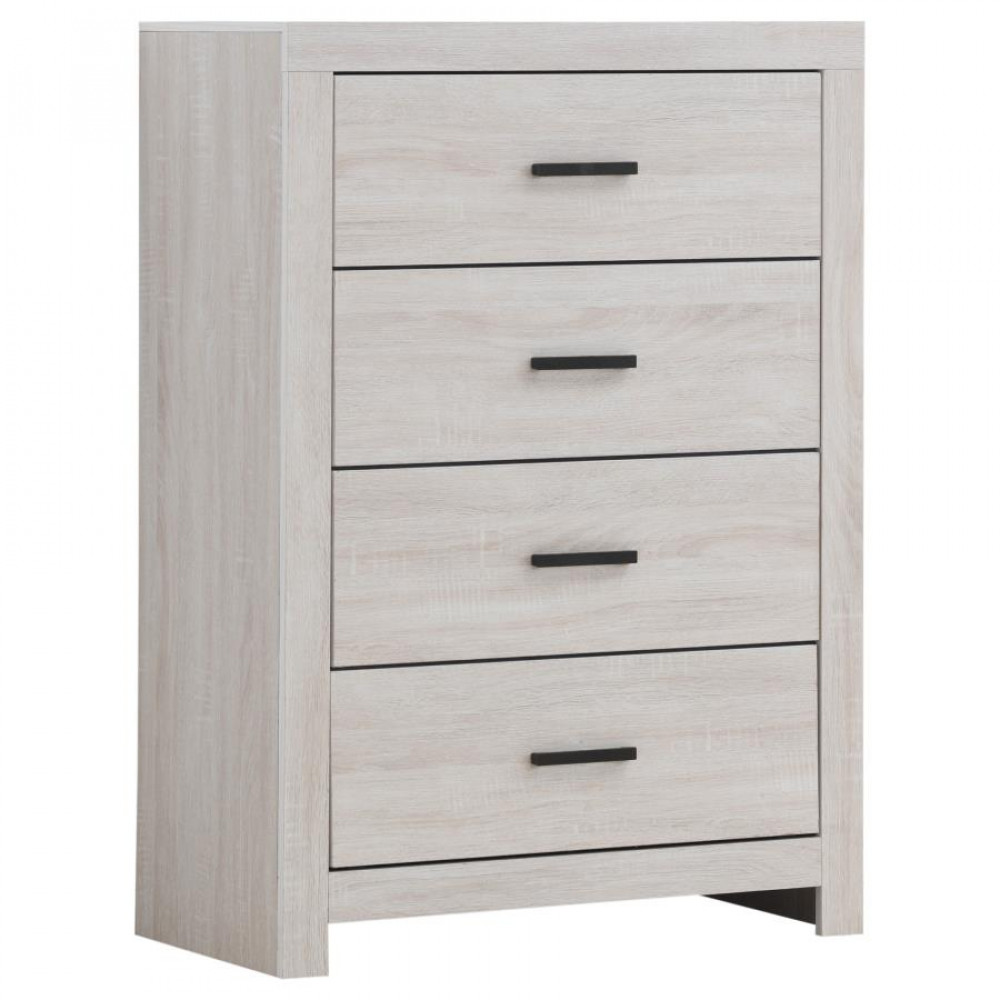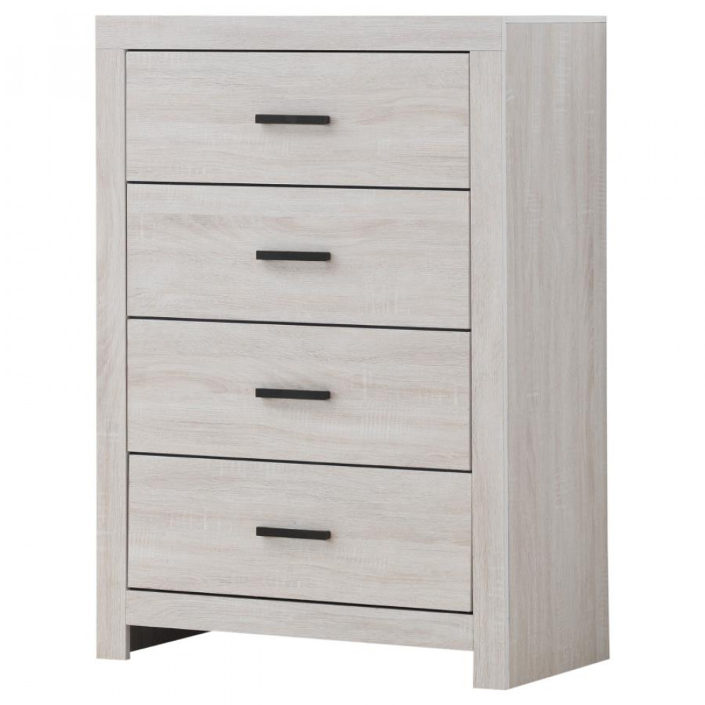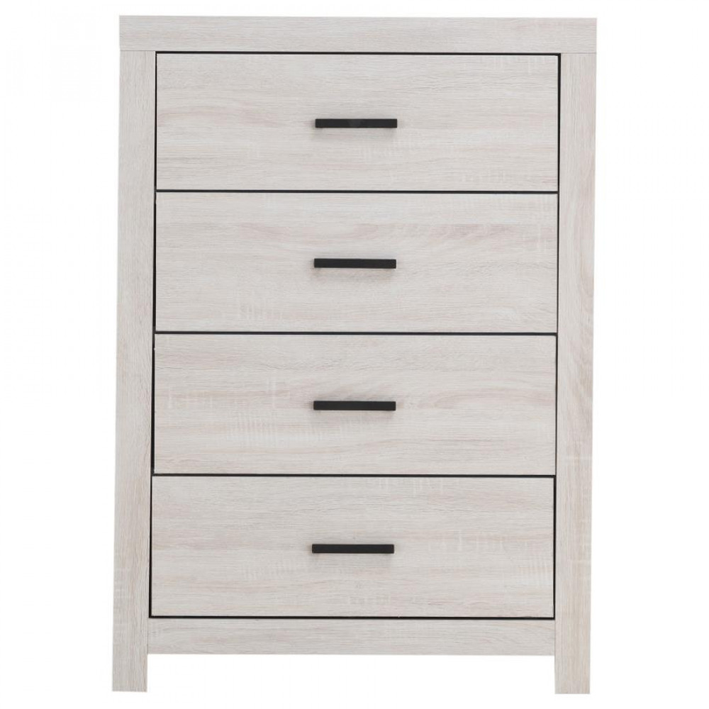 This four-drawer chest combines modern style with practical storage. Its clean-lined frame complements contemporary spaces, while four spacious drawers provide ample room for clothing, linens, and accessories. Crafted from engineered wood with a durable laminate veneer, it is built for everyday durability. Matte dark bronze handles enhance the refined look, making this chest a functional and stylish addition to any bedroom.