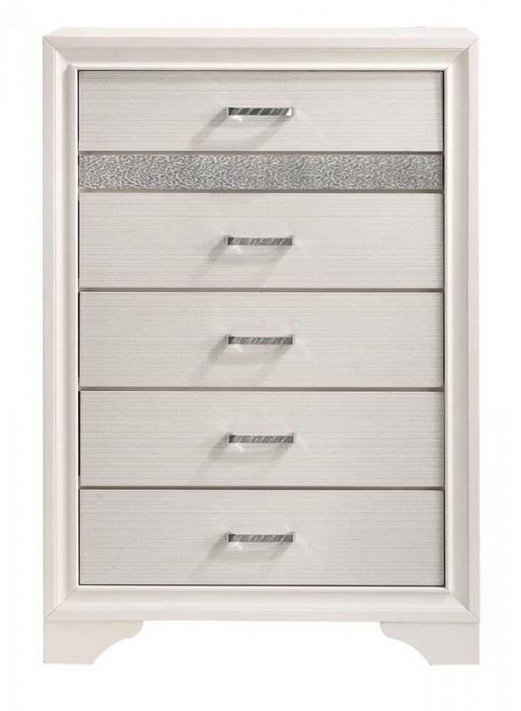 Give your bedroom a glamorous update with this gorgeous chest. Modern style with hidden Jewelry Drawer.