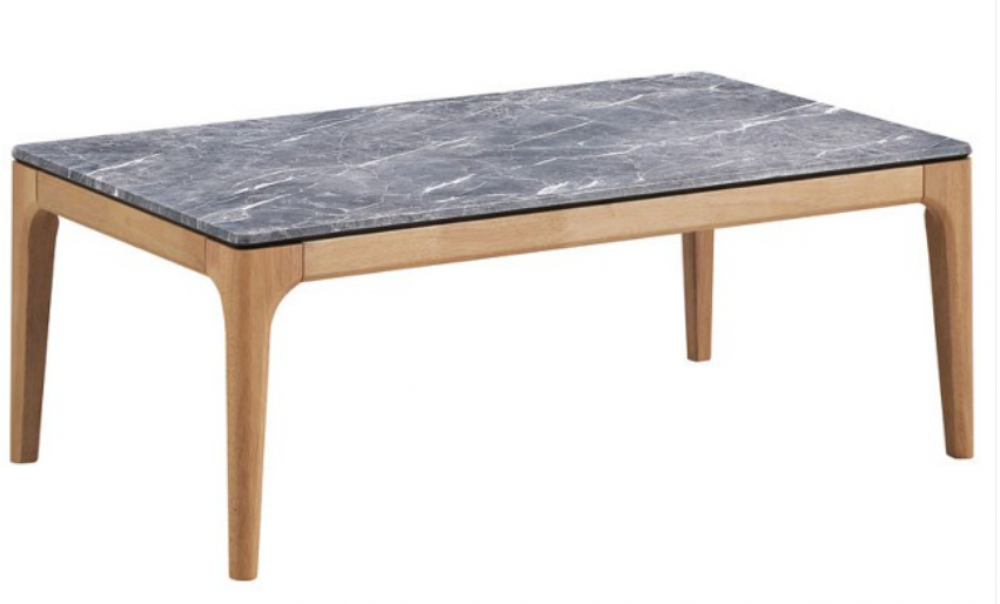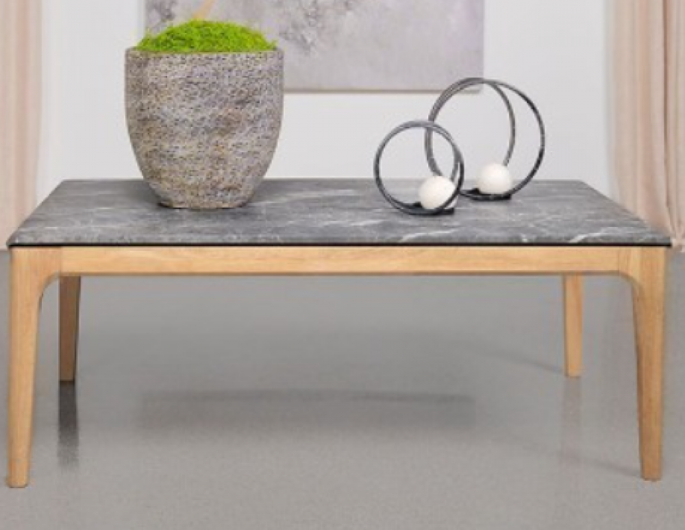 Cradled in the natural warmth of its brown base, the coffee table offers a delightful contrast with its square high-pressure laminate top that marvelously mimics marble. A testament to mid-century modern design, this piece brings both form and function to the fore, inviting admiration and utility in equal measure. The cool grey top against the organic hue of the legs creates a visual harmony that speaks to contemporary tastes, while the faux marble evokes a sense of sophisticated luxury without the opulence. Perfectly sized to nestle beside your favorite armchair, this table is an ode to enduring style with a practical edge.