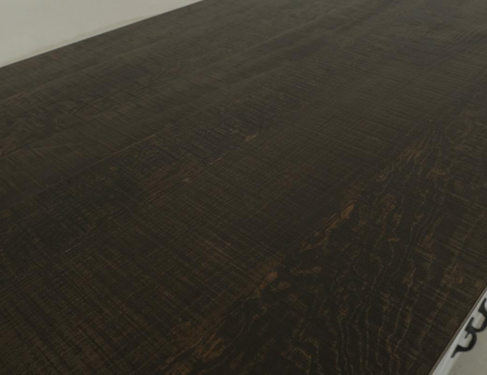 - Two-tone, multi-step lacquer finish with a weathered white effect on hand-distressed wood and brown tops.