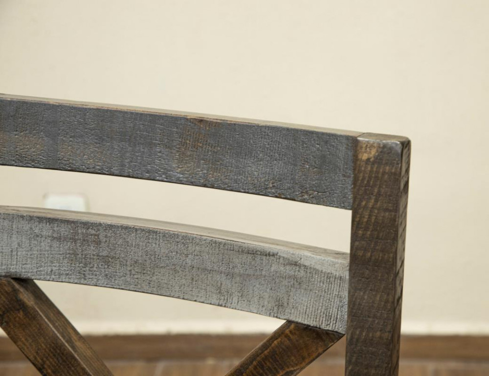 - Multi-step hand-painted finish in gray and brown tones for a "reclaimed wood" look.