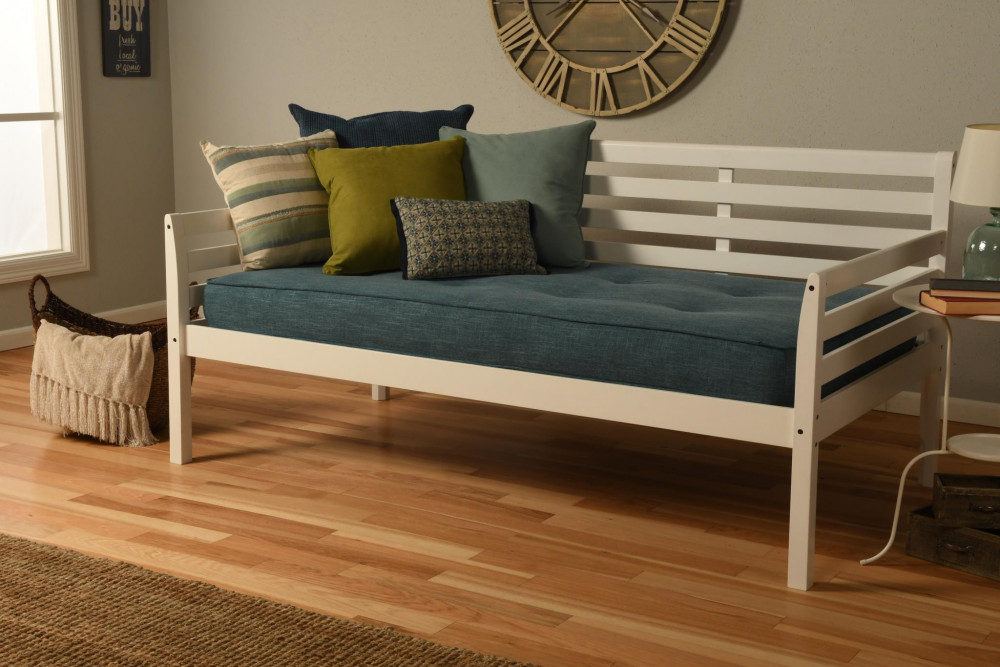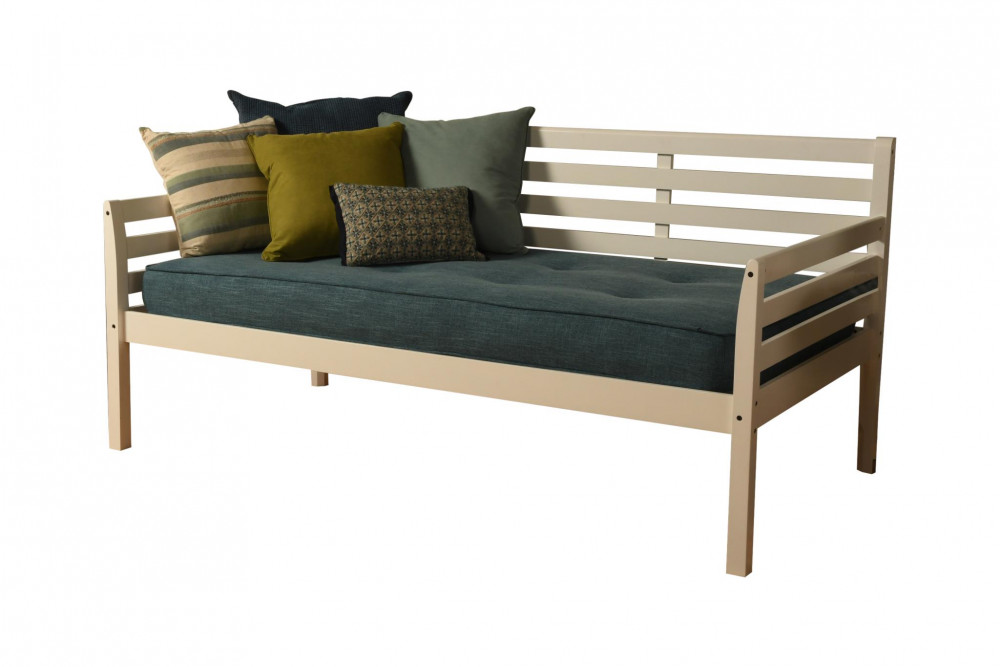 Boho Daybed in White Finish With Linen Aqua Mattress