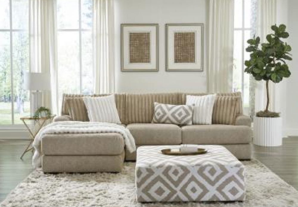This sectional is featured in a beautiful honey, toast fabric finish for a neutral but classy look. With its classic look and durable construction, this piece complements various styles and offers long-lasting beauty.