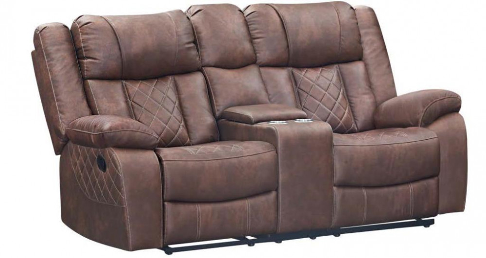 The Conner Brown motion console love seat is a traditional reclining love seat with manual recliners and will make any living room look elegant and you will be relaxed in style!