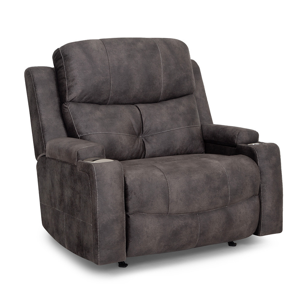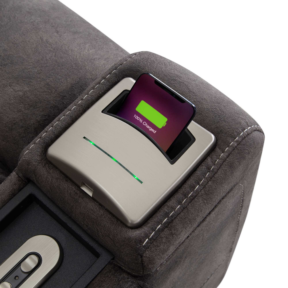 The Loaded Ebony Power Recliner 1/2 With Frosty Fridge Chair and a Half Power Recliner combines spacious comfort with modern innovation. Designed with a power footrest for effortless relaxation, it also comes standard with convenient wireless charging and a USB charging port to keep your devices powered up. Dual storage arms and a stainless steel cupholder provide easy access to your essentials while you unwind. Featuring our WOW Seating System, which blends precision-cut wood frames with gel-blended foam seating, the Arlington delivers superior support and plush comfort. With a sturdy 275 lb. weight capacity, this recliner is the perfect blend of luxury, functionality, and durability.
