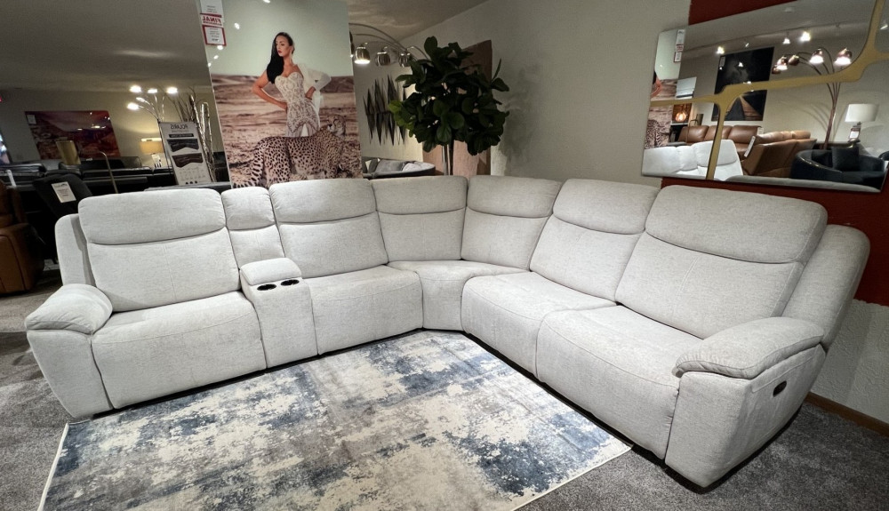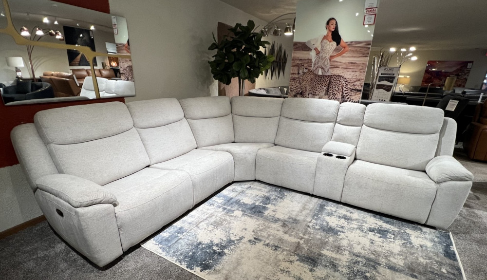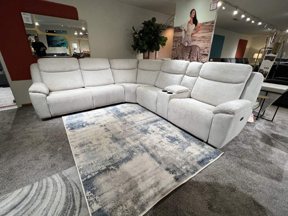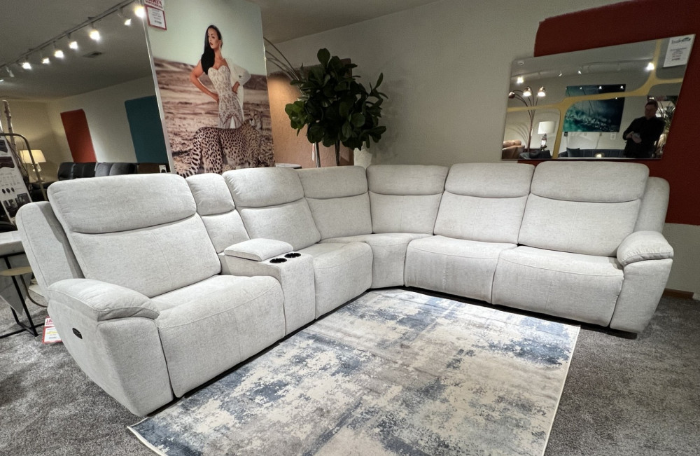 Introducing the TADA with three power recliners, functionality never felt so comftorable! Enjoy the plush comfort of this six-piece sectional seating group. You'll love the luxury of its three power recliners one on each end, and one power recliner in the middle all which feature power headrests. Between those, you'll find an armless power recliner, an armless chair, a corner wedge and a multifunctional storage console with cupholders. The TADA can be reversed making it versatile for any space.