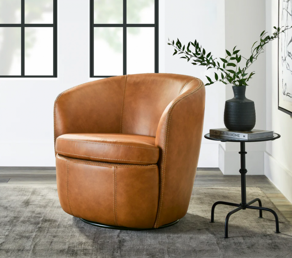 Barolo Vintage Caramel All Over Leather Swivel Club Chair