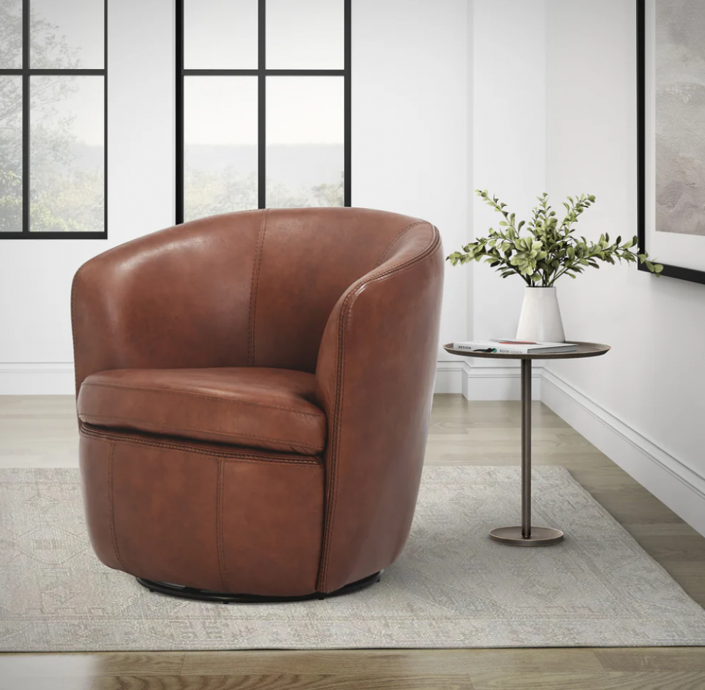 Barolo Vintage Whiskey All Over Leather Swivel Club Chair