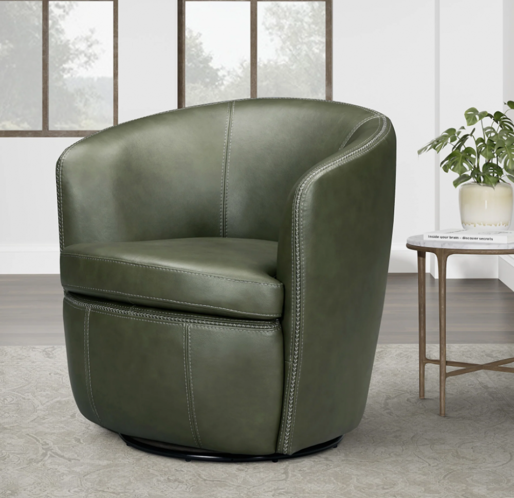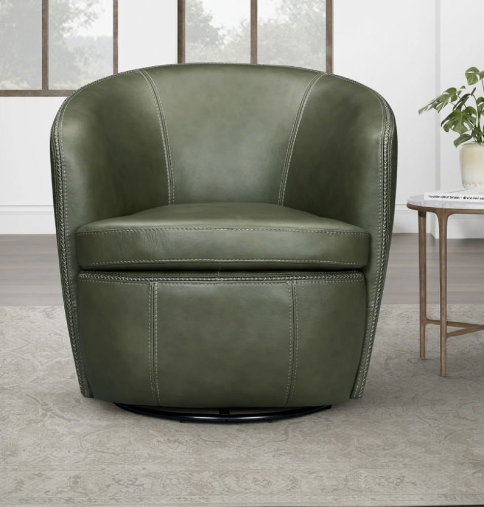 Barolo Lyric Sage All Over Leather Swivel Club Chair