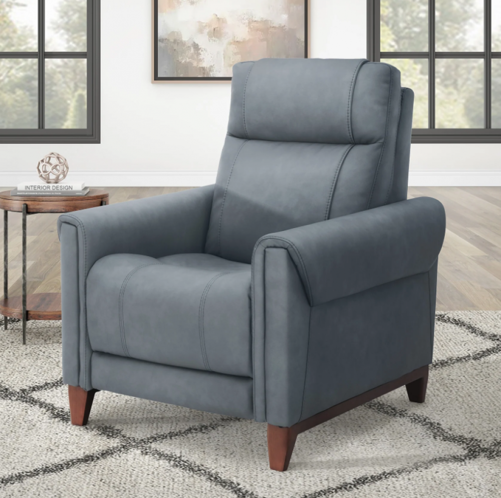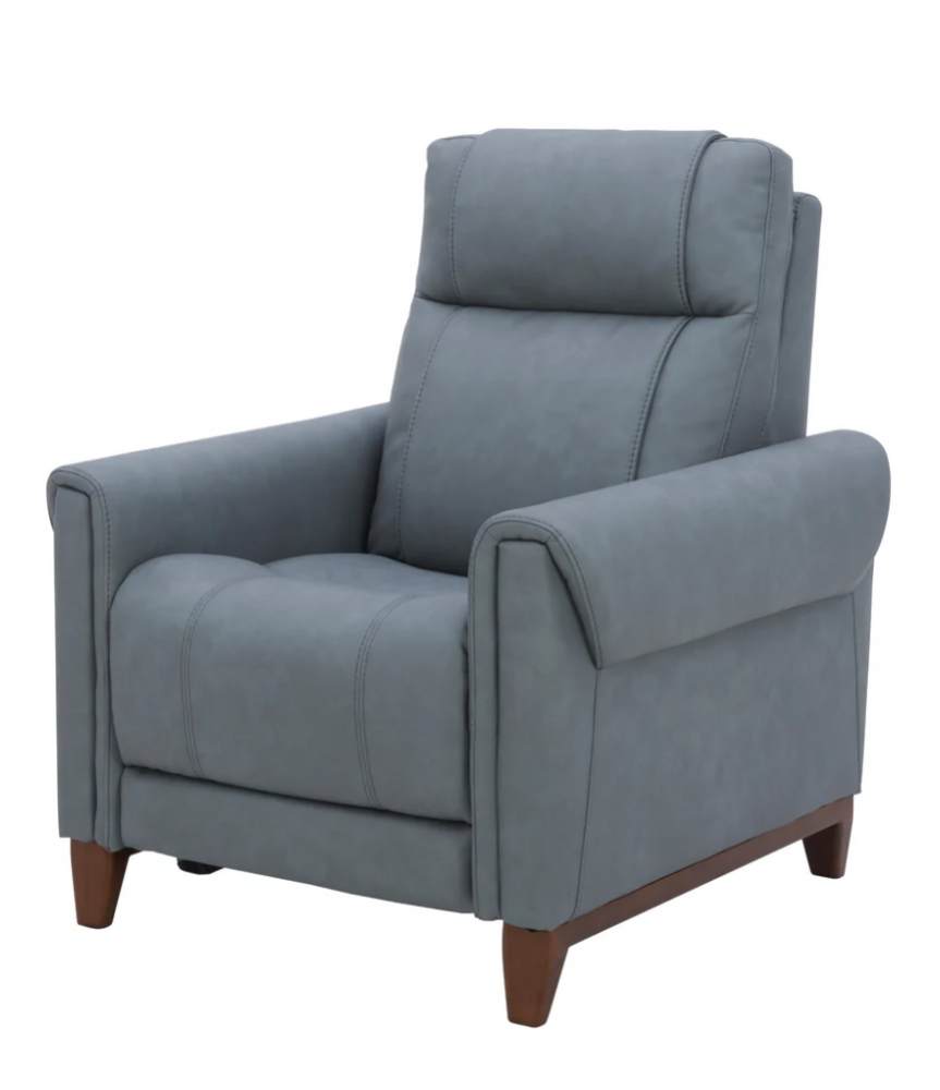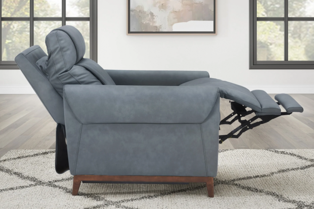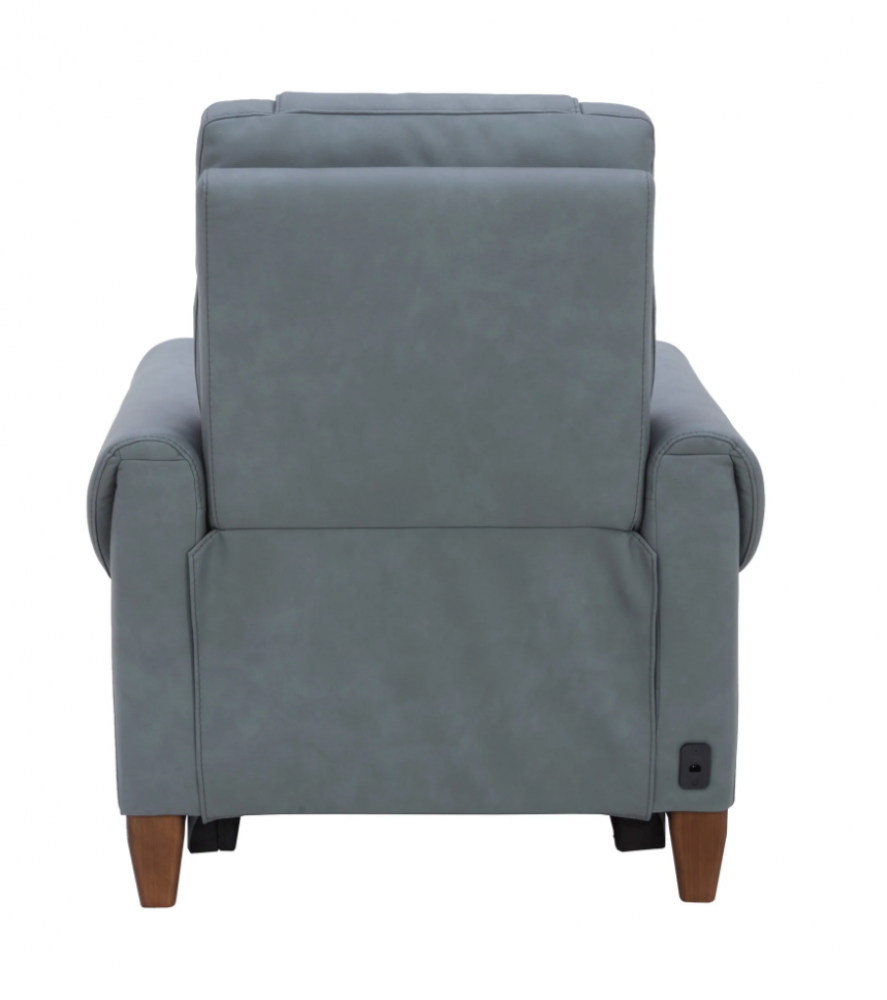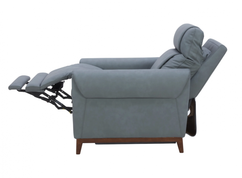 Sleek, smart, and effortlessly refined, the Conrad recliner redefines modern comfort with power recline, an independent power headrest, and hidden controls featuring USB, USB-C, and a Home button for ease. Wrapped in high-performance synthetic leather, it pairs durability with a luxurious feel. Thoughtful design details - like the foldover envelope arm, exposed wood base with tapered legs, hidden footrest extension, and slimline pillow-top overlay - combine architectural style with ergonomic comfort.