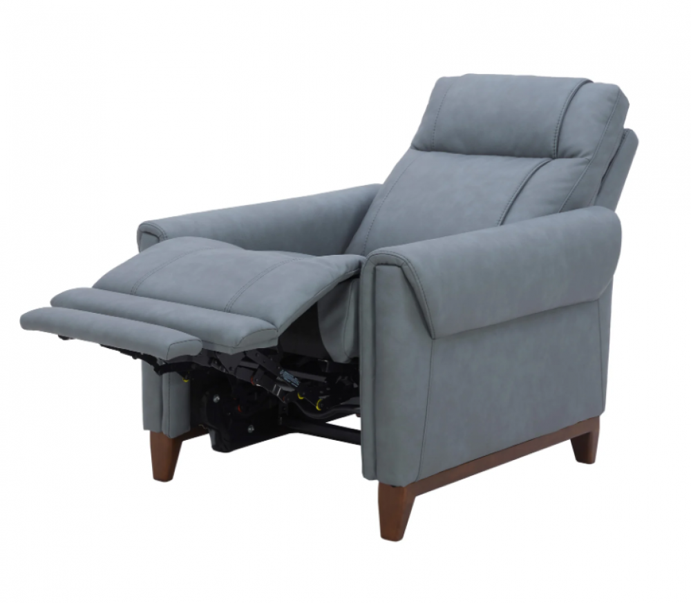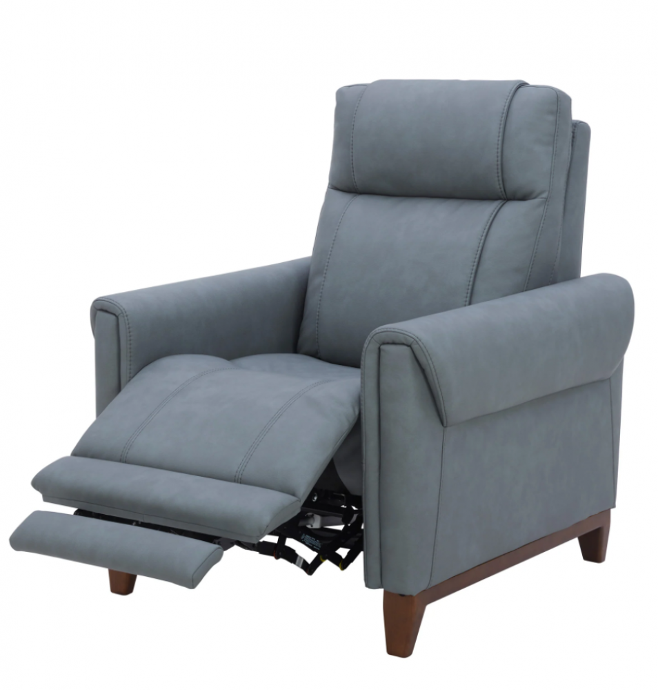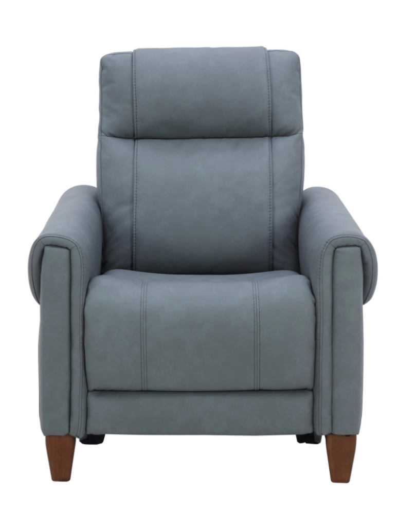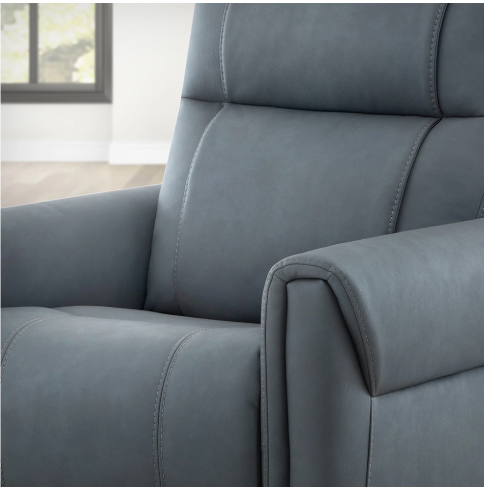 Sleek, smart, and effortlessly refined, the Conrad recliner redefines modern comfort with power recline, an independent power headrest, and hidden controls featuring USB, USB-C, and a Home button for ease. Wrapped in high-performance synthetic leather, it pairs durability with a luxurious feel. Thoughtful design details - like the foldover envelope arm, exposed wood base with tapered legs, hidden footrest extension, and slimline pillow-top overlay - combine architectural style with ergonomic comfort.