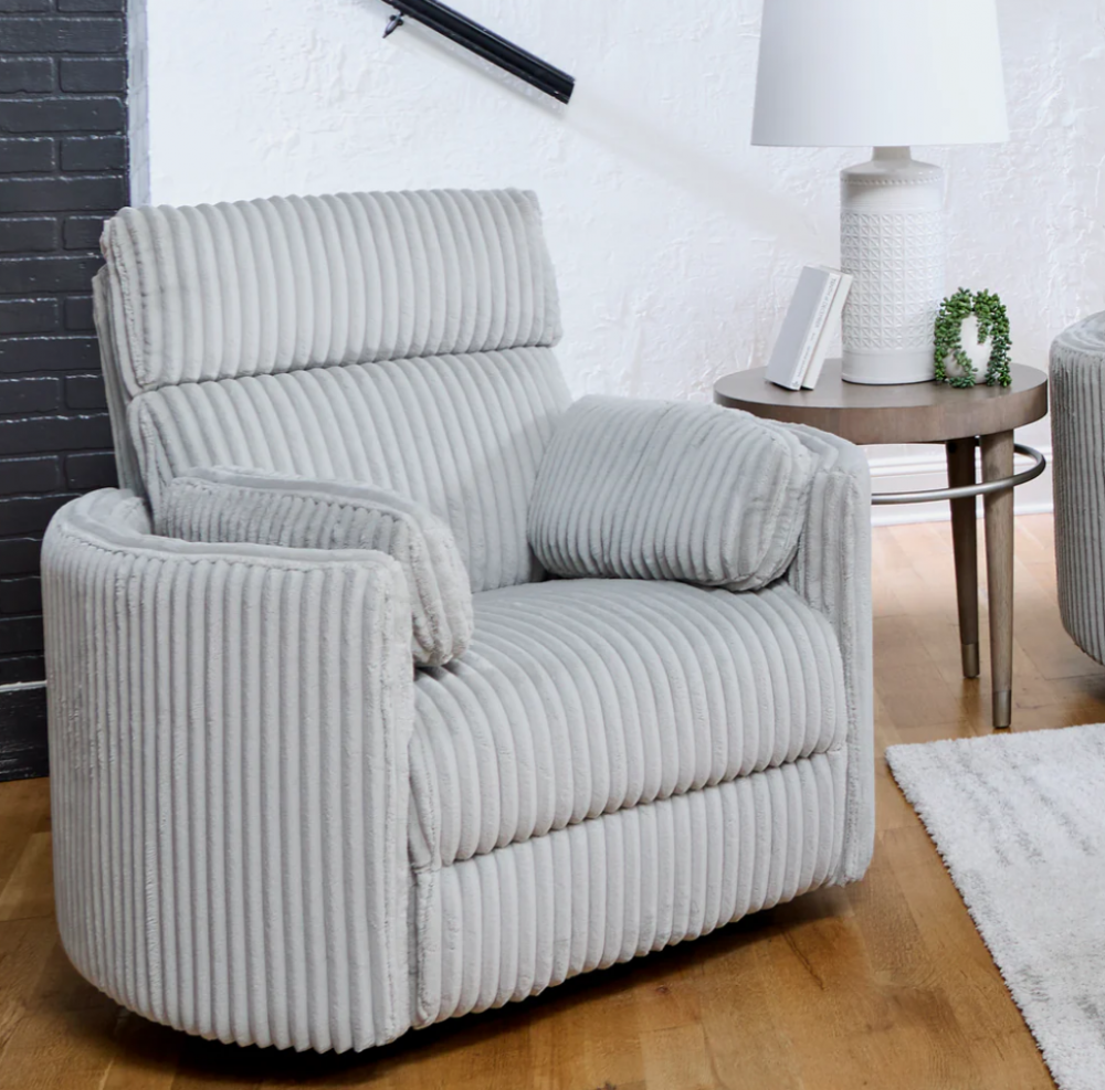 Fashionable and functional, this stylish Power Swivel Glider Recliner’s swivel feature will ensure you never miss any of the action or conversation. Perfect for relaxing at the end of a long day, this model features a soothing gliding motion and smooth power reclining for ultimate comfort.