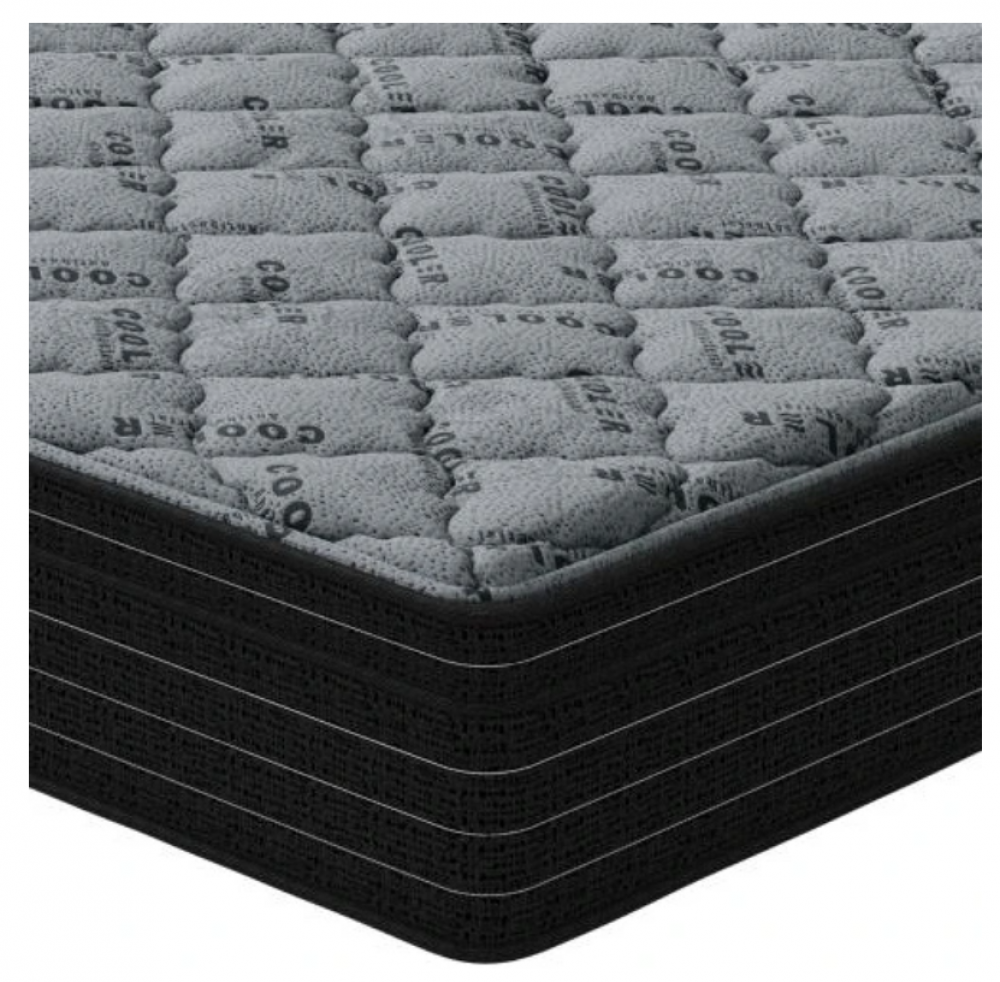 The Cooler Deluxe Pillow Top Mattress offers an exceptional combination of comfort, durability, and support. It boasts one spring unit, wrapped in foam encasement which helps with more support on the side of the mattress. Its Head to foot helical coils greatly reduce partner disturbance cause from movement. Providing superior motion and weight distribution, creating a restful sleep experience night after night. The cooling cover keeps you dry through even the hottest of summer nights. It stands about 12" high and is medium firm giving you that perfect balance of comfort and stability.